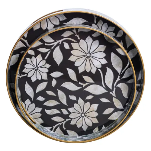 Набір із двох круглих підносів із діаметрами 32,5 та 37 см є універсальним і практичним рішенням для сервірування вдома. Ці підноси виготовлені з міцного пластику, що забезпечує їх довговічність і легкість у догляді. Глянцева поверхня та акуратна окантовка надають виробам естетичного та сучасного вигляду, а квітковий орнамент додає декоративний акцент.
