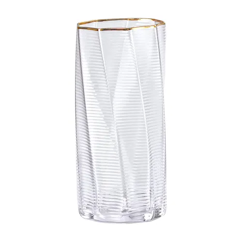 Кожен стакан прикрашений вишуканим золотим обідком, що надає виробу розкішний та вишуканий вигляд. Унікальна 3D-текстура поверхні не лише підсилює візуальне сприйняття, але й додає сучасний дизайнерський акцент в інтер’єр їдальні зони.