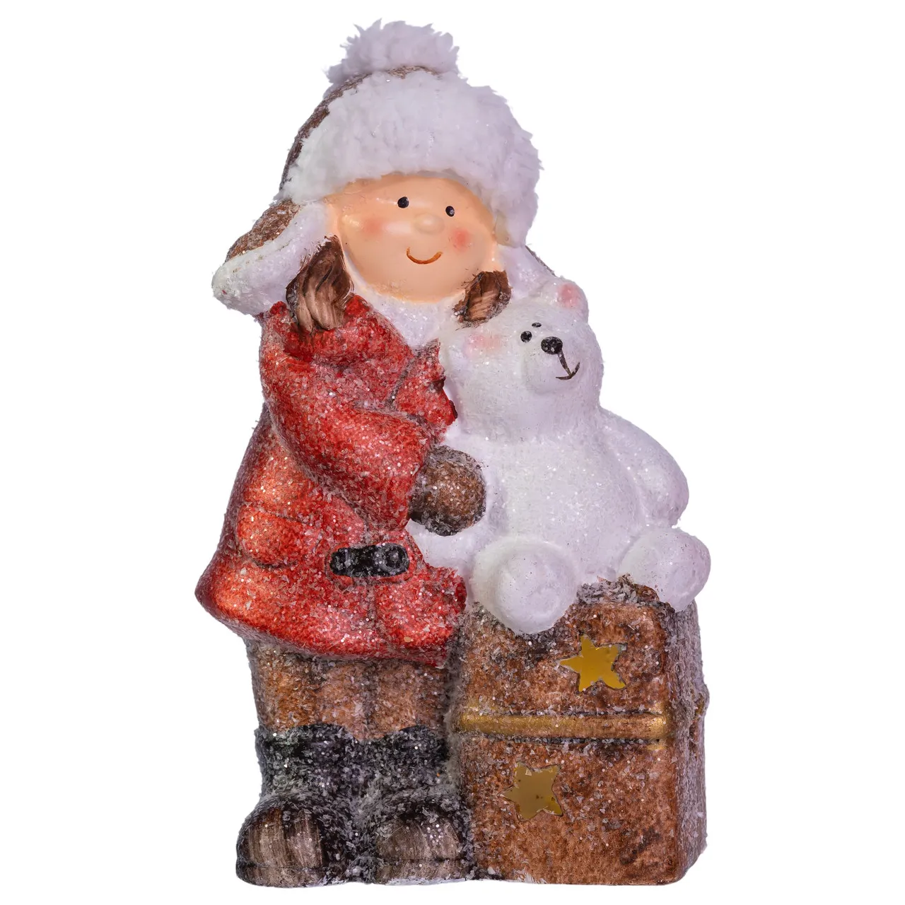 Характеристики "Новорічна декоративна фігурка з підсвіткою 12×6×20 см Новорічний декор Дівчинка з подарунком з порцеляни CR-5-17"