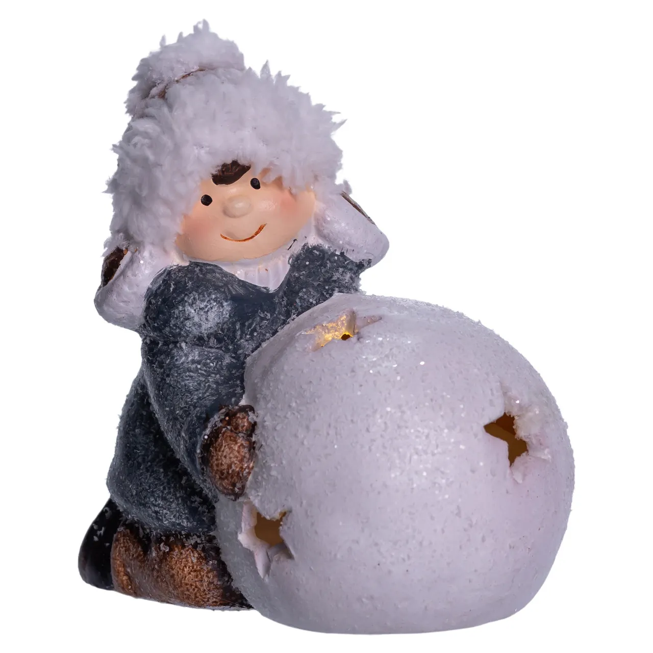 Новорічна фігурка з підсвіткою Дівчинка зі сніговою кулею з фарфори 11×7×12 (см) новорічний декор для дому на подарунок CR-5-12