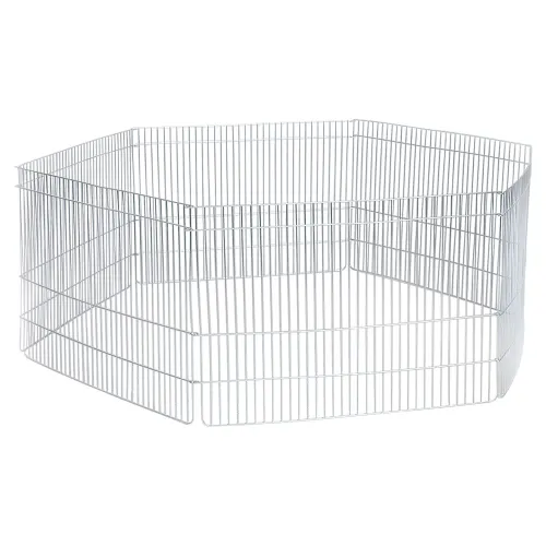Міні-вольєр виготовлений із металу з використанням сучасних європейських технологій оцинкування. Цинкове покриття захищає метал від корозії, забезпечує довговічність та довгий привабливий зовнішній вигляд клітини. Це робить вольєр надійним рішенням для тривалого використання як у приміщенні, так і на вулиці.