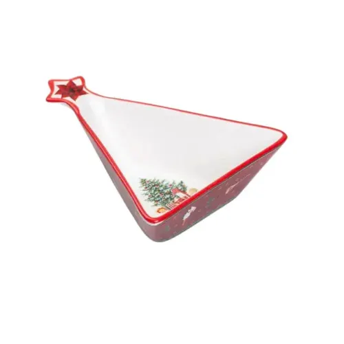 Порцеляна, використана для виготовлення салатниці, характеризується не лише красою, а й надійністю. Цей матеріал має відмінні теплоізоляційні властивості, завдяки чому страви в салатниці довше зберігають потрібну температуру. Гарний червоний колір виробу в поєднанні з формою трикутної ялинки підкреслює святковість та стильність аксесуара.