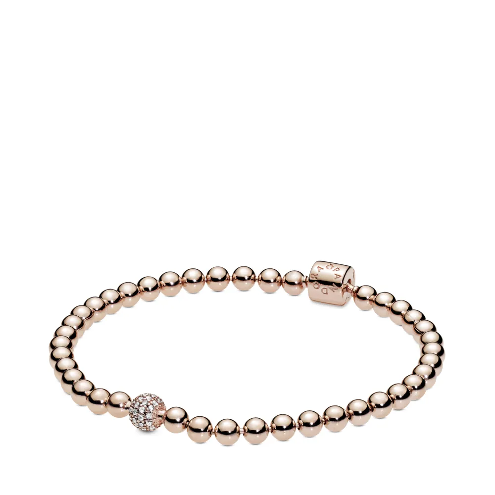 Срібний браслет Pandora Бісер та Pavé з покриттям 14K рожевим золотом