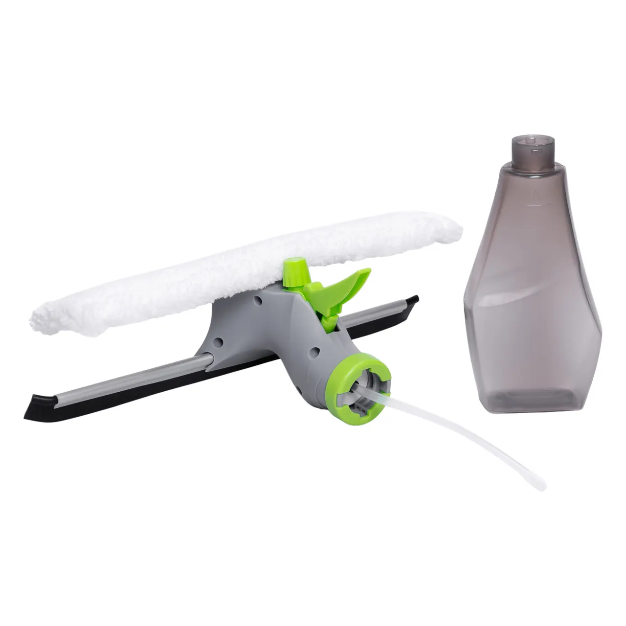 Скребок оснащений гнучким гумовим лезом, що щільно контактує з поверхнею скла, мінімізуючи розводи та залишки вологи. Курсор розпилювача має ергономічну форму, що дозволяє контролювати кількість розпилюваної рідини й зменшувати витрати миючих засобів.