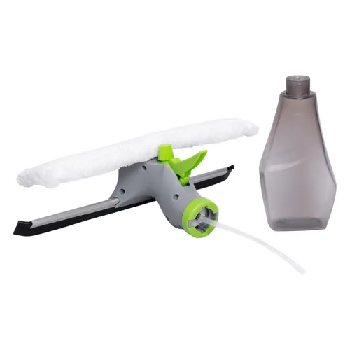 Матеріал мікрофібри гарантує дбайливе ставлення до скла, а пластикова ручка зменшує вагу пристрою, дозволяючи використовувати щітку тривалий час без втоми. Вбудований розпилювач має бути зручним для контролю дозування рідини, що забезпечує економне витрачання миючих засобів.