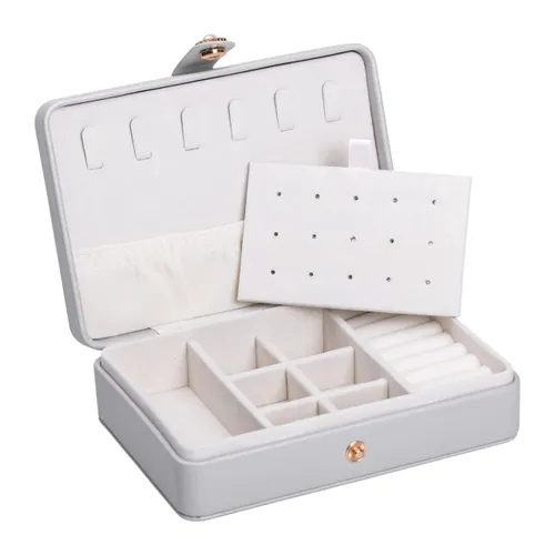 Шкатулка для прикрас із екошкіри 16×11×4.7 см — практичне рішення для акуратного зберігання та захисту ваших ювелірних виробів. Її функціональний дизайн, якісні матеріали та надійна застібка забезпечують зручність і безпеку використання як вдома, так і в поїздках.