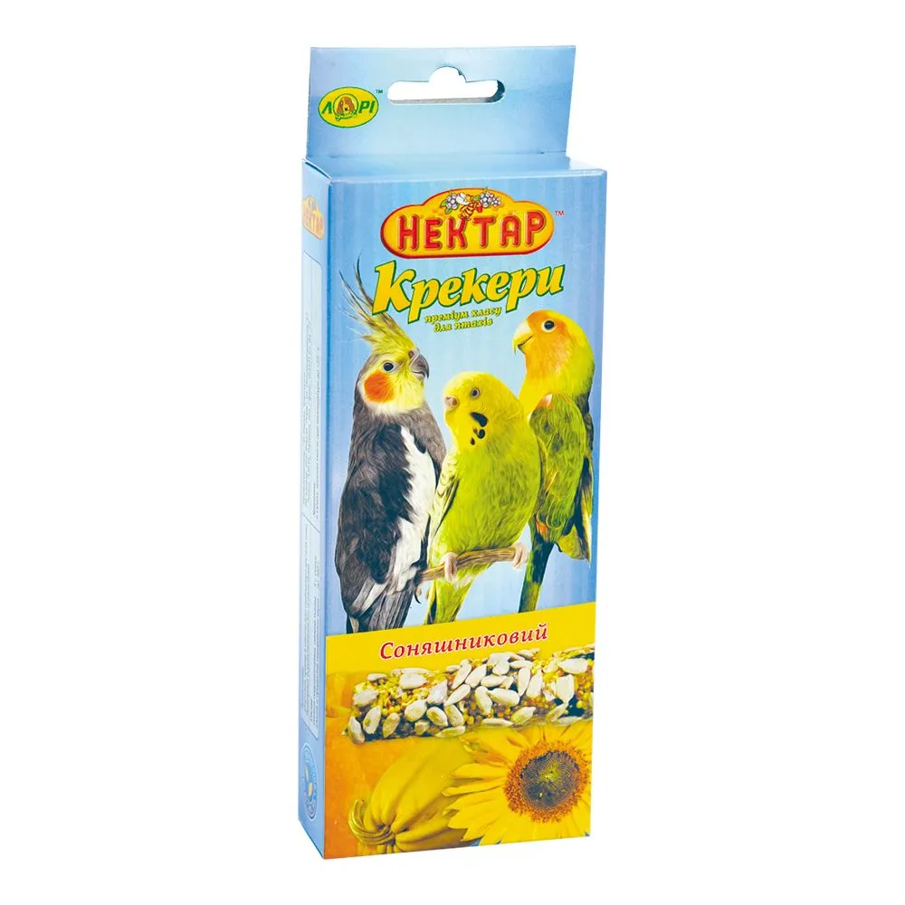 Крекери для птахів преміум класу по 2 шт. в індивідуальній упаковці з різними смаками. Ці ласощі для декоративних птахів з оптимально підібраним комплексом натуральних інгредієнтів. Ми додали ще більше фруктів та овочів. Рецептура доповнена насінням. Велика кількість рослинних жирів у насінні соняшнику робить його важливим джерелом енергії в умовах зимових холодів. Багаторічний досвід у сфері виробництва зернових кормів дозволив нам створити універсальний асортимент із 12 різних смаків для птахів. Якісний склад крекерів відповідає рівню найкращих європейських виробників, а вартість доступна кожному.