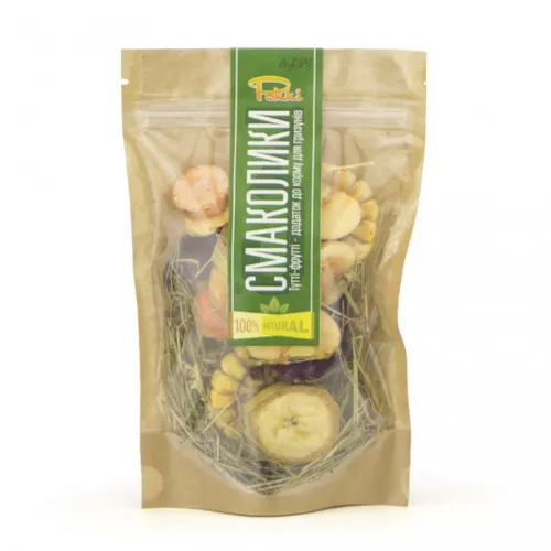 Фруктово-трав'яні ласощі “Тутті-фрутті” стануть улюбленими смаколиками всіх гризунів! Зважаючи на те, що деякі види, такі як декоративні кролики, морські свинки, шиншили та інші невеликі гризуни вважаються травоїдними — ми додали до складу подрібнені та спресовані лугові трави. Це додасть цікавості при поїданні, ще більшої користі та різноманітності до звичайного раціону!