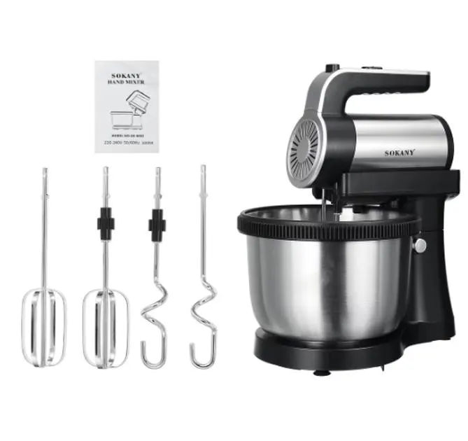 Стаціонарний міксер Sokany з чашею 4 л, 1000 Вт, 5 швидкостей, 2 насадки, віночки та гаки SK-6662