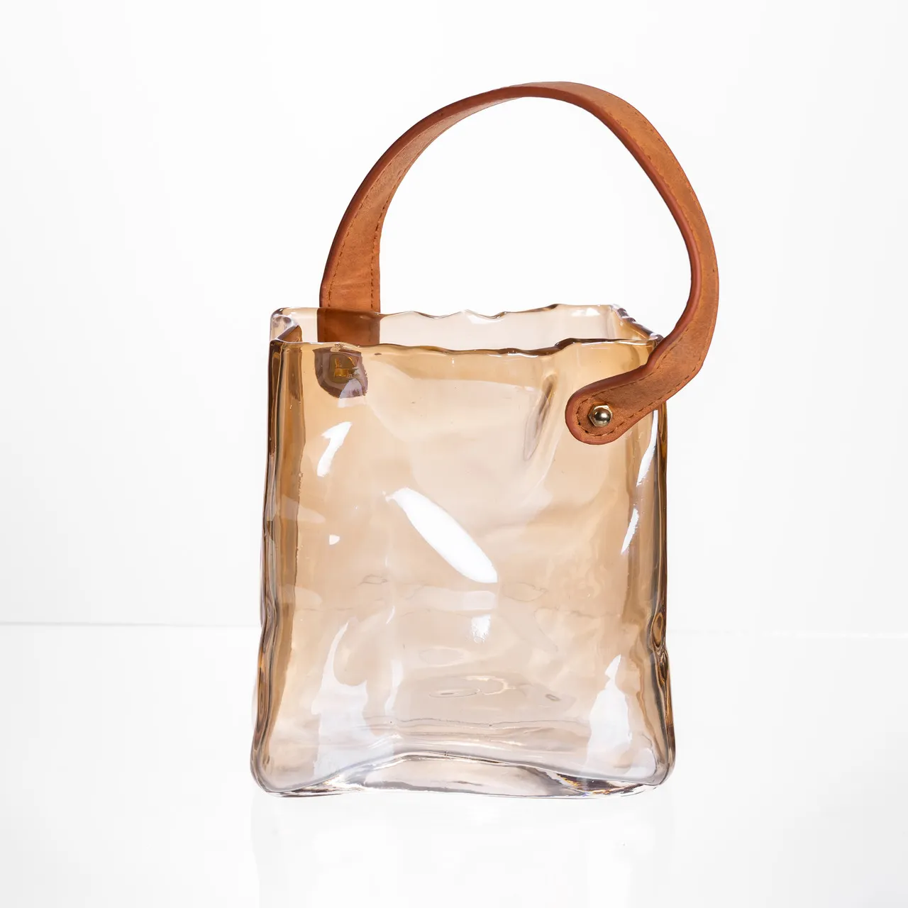 Скляна ваза сумочка з ручкою 13×7×16.5 (см) декоративна ваза для квітів 1 (л) Коричневий HP-19-155-1