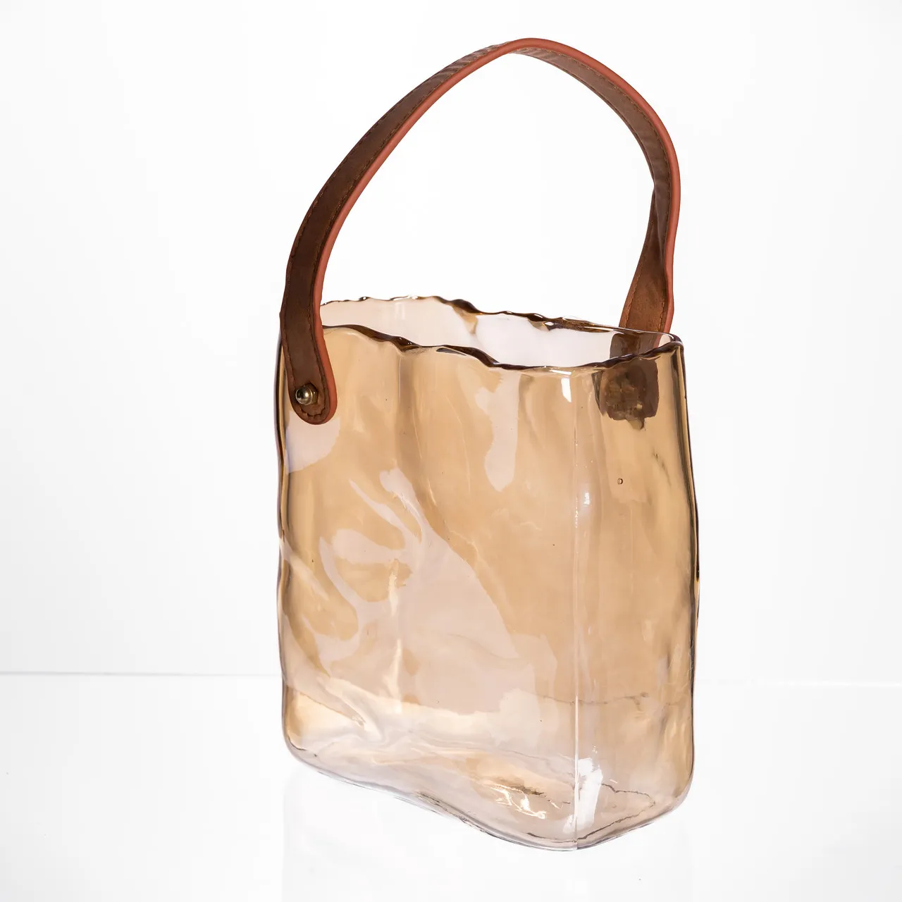 Скляна ваза сумочка з ручкою 16×8×18.5 (см) декоративна ваза для квітів 2 (л) Коричневий HP-19-156-1