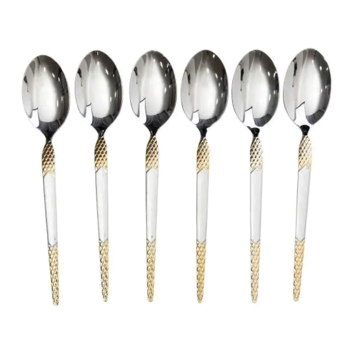 Набір столових ложок 6 штук з нержавіючої сталі ложки столові 21 см Срібло з золотом HP-20-37