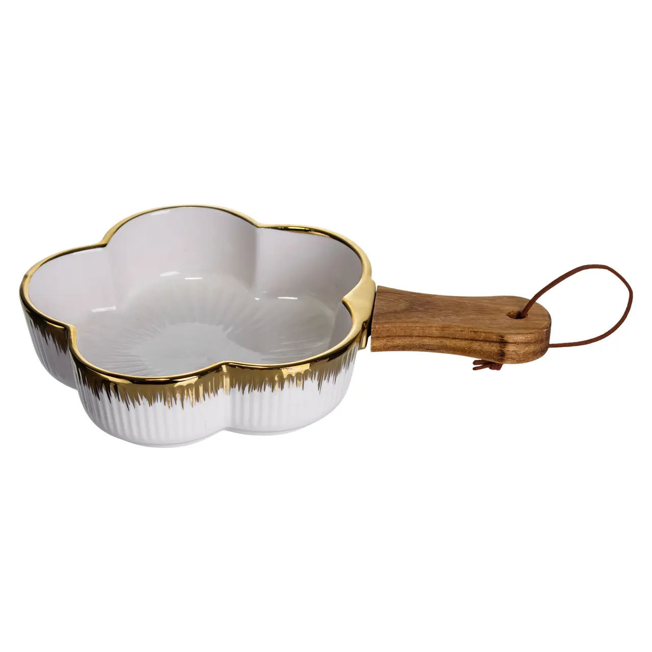 Тарілка порцелянова глибока з ручкою Квітка 24×16×4 (см) блюдо сервірувальне з ручкою для подачі тарілка сковорода Золото ZJH-13-1