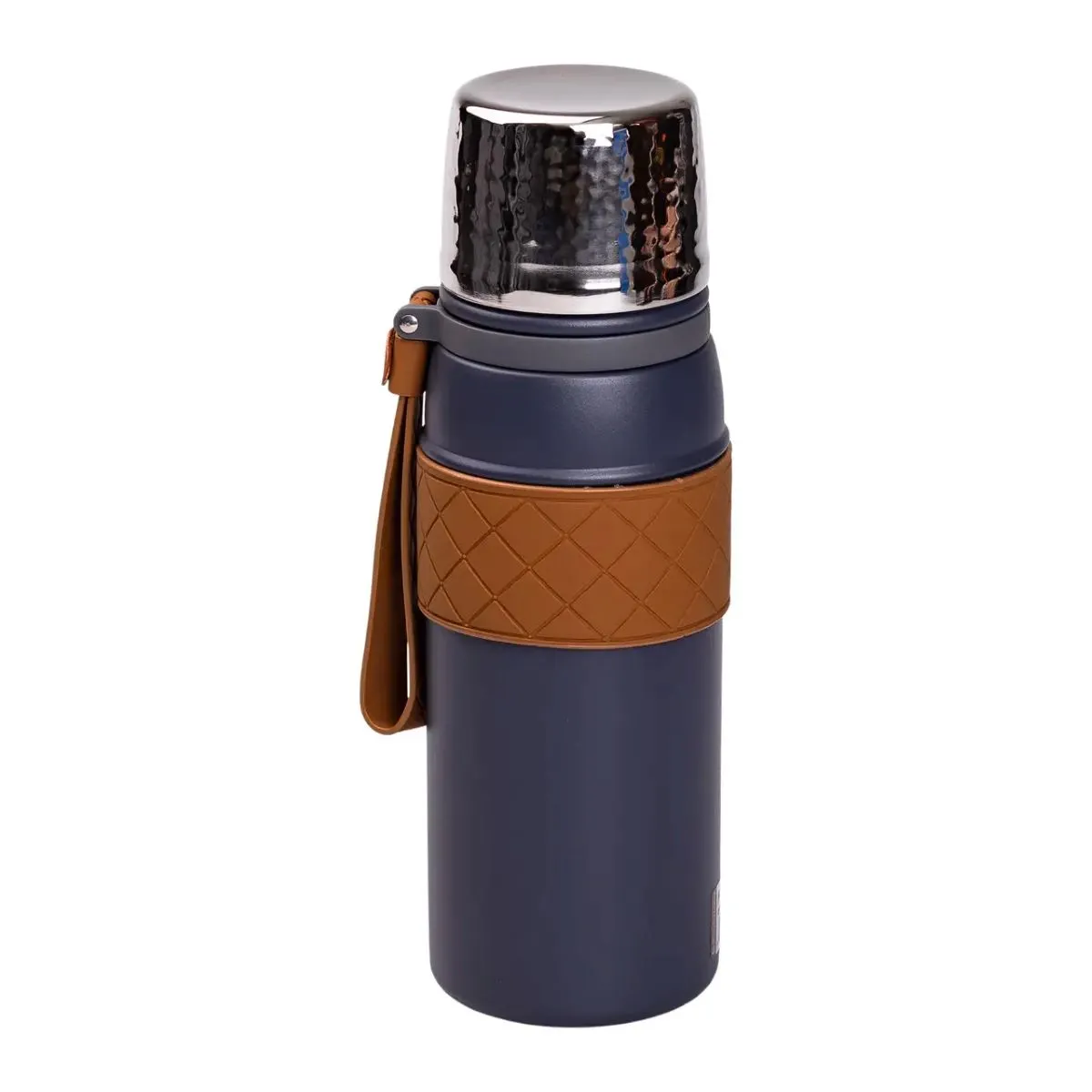 Кришка містить герметичну силіконову прокладку, що виключає протікання рідини, забезпечуючи чистоту та безпеку використання. У комплекті є ремінець для перенесення, який надійно фіксує термос на сумці або в руці, підвищуючи комфорт при транспортуванні.
