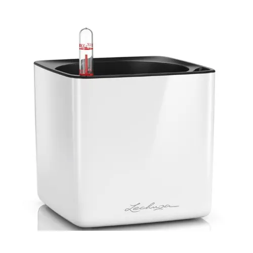 Lechuza Cube Glossy 14 – - це не тільки стильний аксесуар, але й приклад технологічного прогресу, оскільки оснащений унікальною системою автополиву. Ця система забезпечить необхідний догляд рослин навіть у вашій відсутності. Внутрішній вазон дозволяє розмістити рослини без пересадки, а гніт рівномірно доставляє вологу до коріння рослин.