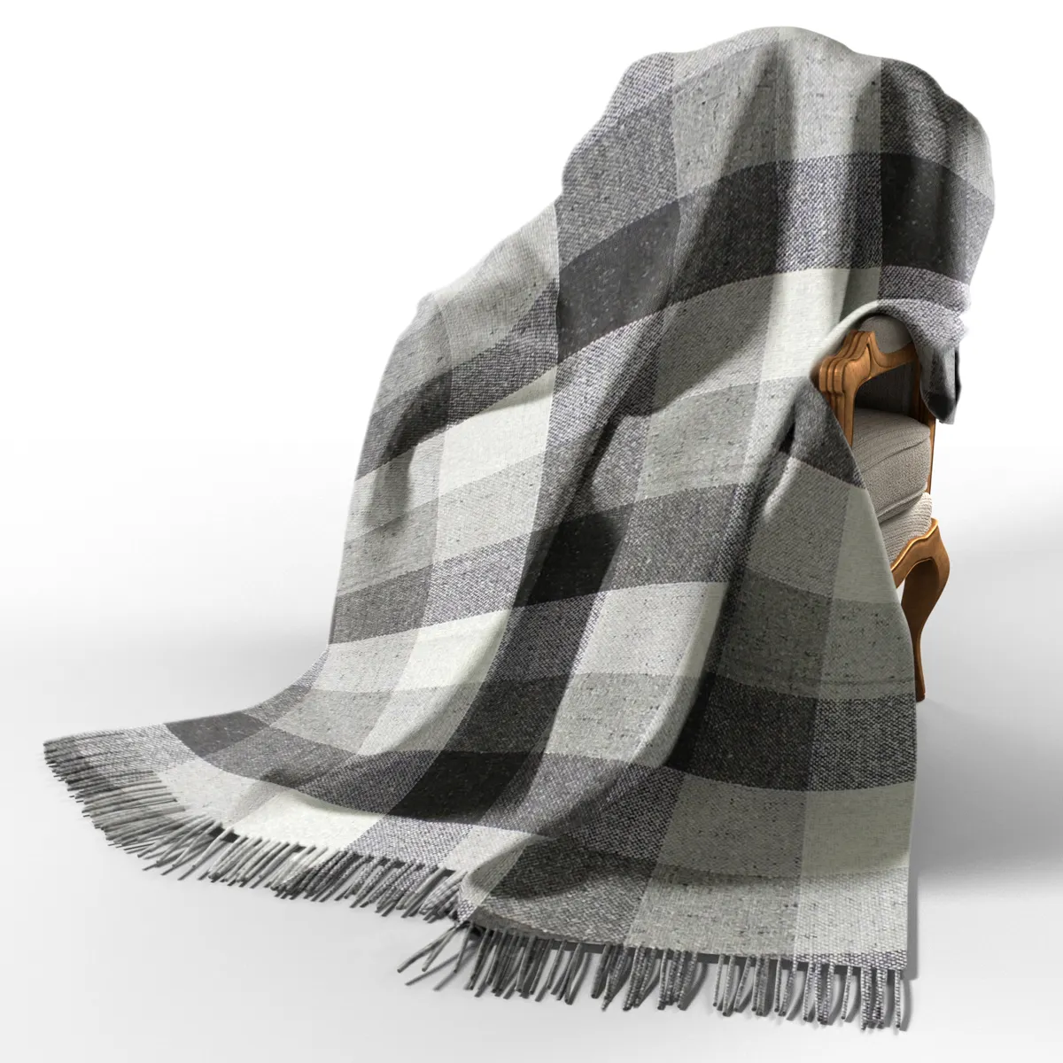 Завдяки плетенню з кольоровою шотландською клітинкою в білo-сірому антрацитовому виконанні плед не лише виконує функцію утеплення, а й доповнює інтер’єр стильним акцентом. Декорування виробу бахромою додає йому класичного вигляду та підкреслює його якість. Щільність матеріалу 285 г/м2 забезпечує оптимальну міцність і довговічність при щоденному використанні.