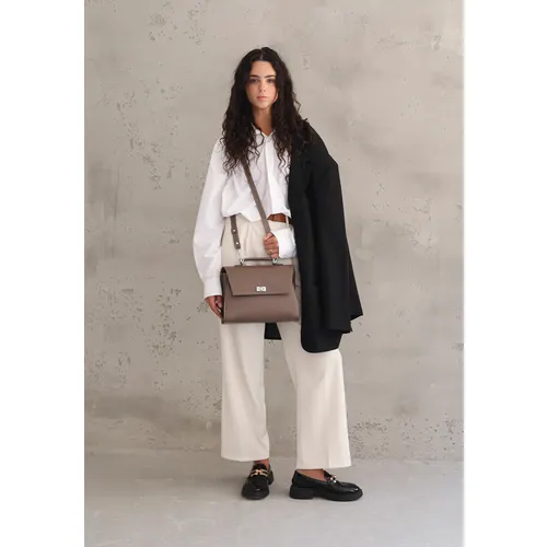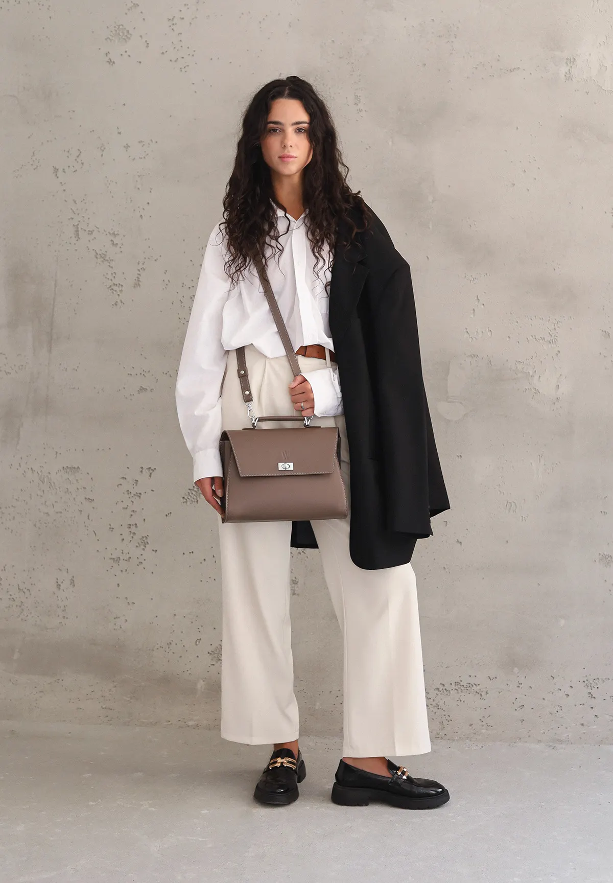 Сумка Classic темно-бежевого кольору виконана в класичному стилі, що робить її універсальним аксесуаром на будь-який випадок. Простий і елегантний дизайн без зайвих деталей дозволяє акцентувати увагу на якості матеріалу та формі виробу.