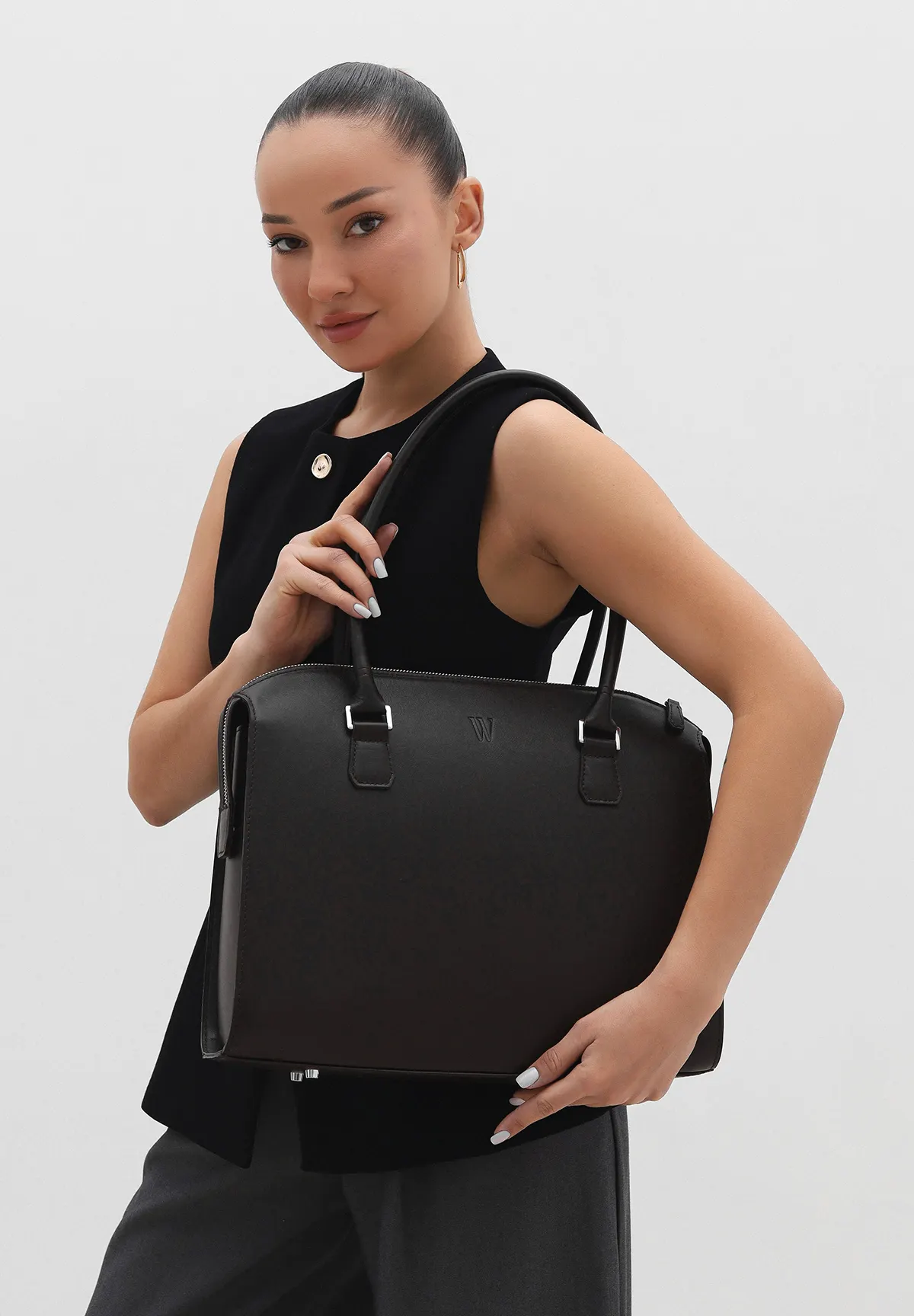 Однією з ключових переваг сумки є її універсальність. Вона гармонійно вписується як у діловий гардероб, так і у повсякденний, casual-стиль. При цьому модель не обмежує простору: завдяки продуманому внутрішньому устрою можна носити ноутбук, документи та дрібні речі, не втрачаючи порядку.