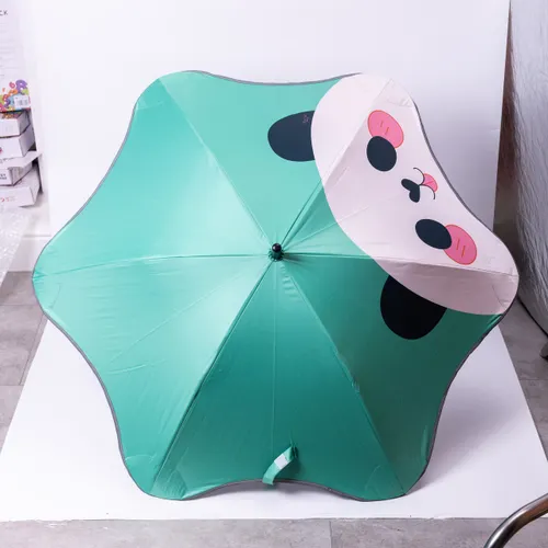 Елегантна дитяча парасоля зеленого кольору з принтом легко комбінується з різним літнім і весняним одягом, включаючи легкі куртки, вітровки та гумові чоботи. Яскравий візерунок робить аксесуар помітним, що підвищує безпеку на вулиці, особливо в похмурі та дощові дні.