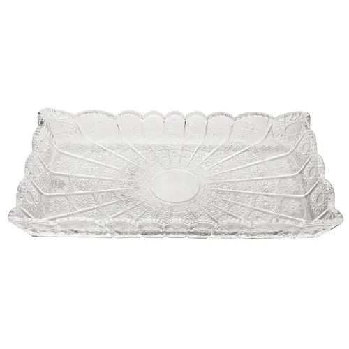 Материал блюда — прочное стекло, обеспечивающее долговечность и надежность. Его прозрачный цвет гармонично сочетается с любой посудой и интерьером. Прямоугольная форма блюда позволяет оптимально разместить разнообразные закуски, обеспечивая эргономичность и удобство подачи.