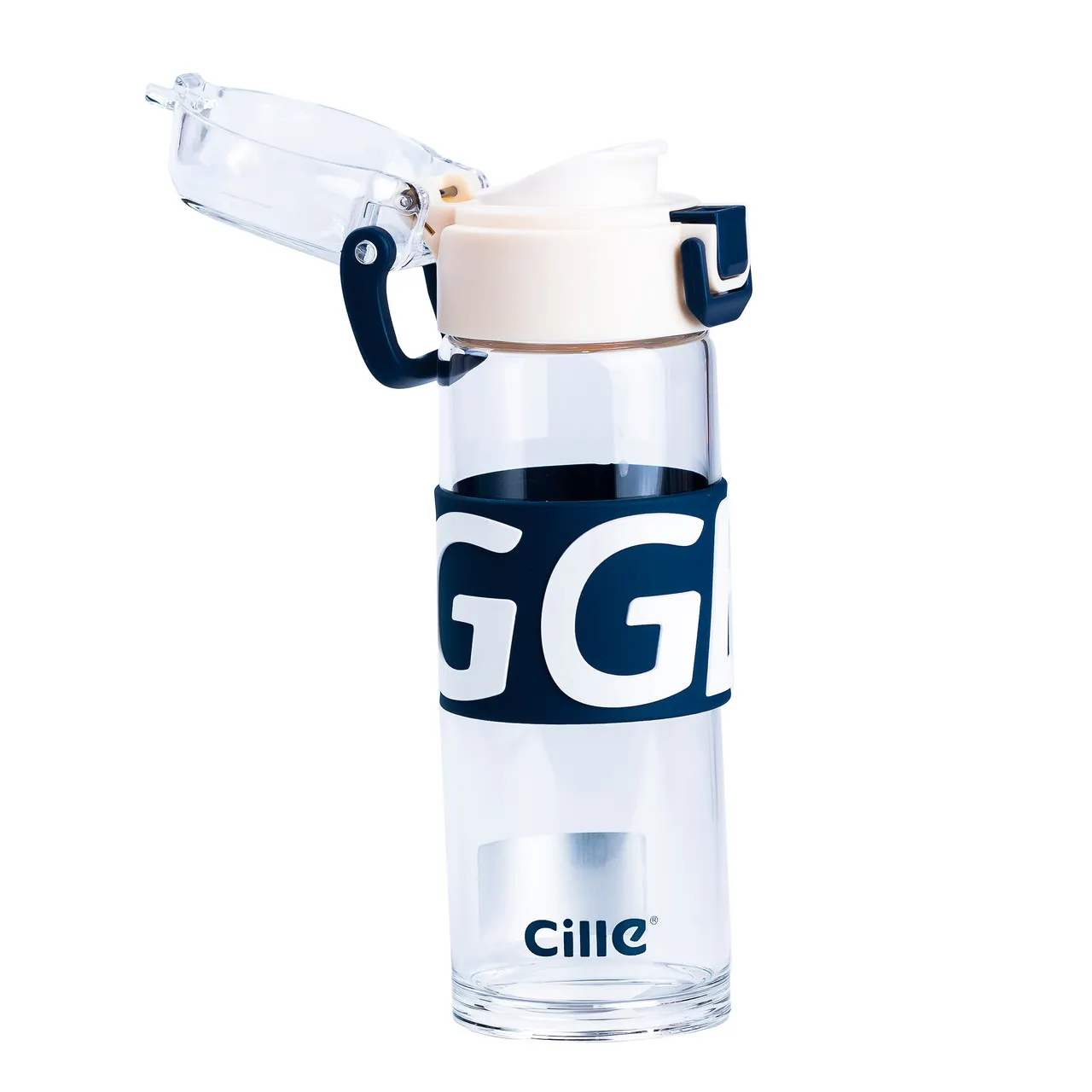 Стеклянная бутылка для воды объемом 460 мл с пластиковой крышкой — практичный и экологичный аксессуар для повседневного использования. Изготовленная из толстого стекла, она отличается высокой прочностью и устойчивостью к повреждениям. Прозрачный корпус позволяет визуально контролировать уровень жидкости, а гравировка логотипа Cille придает изделию изящный и современный вид.