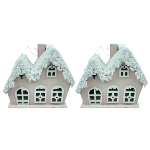 Декоративный новогодний домик из дерева 5×10×12 см Пудровый 28124400