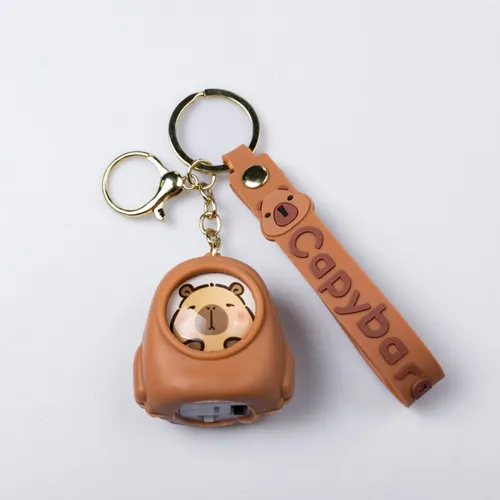 Данный брелок выделяется своей уникальной тематикой — милой капибарой в ракете, которая не только симпатична, но и функциональна благодаря светящемуся элементу. Такой дизайн позволяет выделиться из массы стандартных брелоков и добавить элемент игры и радости в повседневную жизнь.