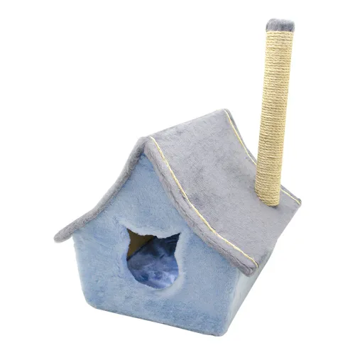 Этот дом-драпак изготовлен из экологически чистых материалов и лишён специфического запаха, что делает его безопасным для здоровья вашего питомца. Сочетание серого и голубого цвета добавляет эстетической привлекательности, вписываясь в интерьер любой комнаты.