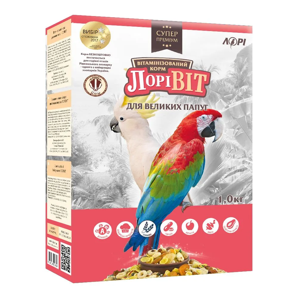 Корм для больших попугаев 1 кг Лоривит — идеальное питание для ваших пернатых друзей