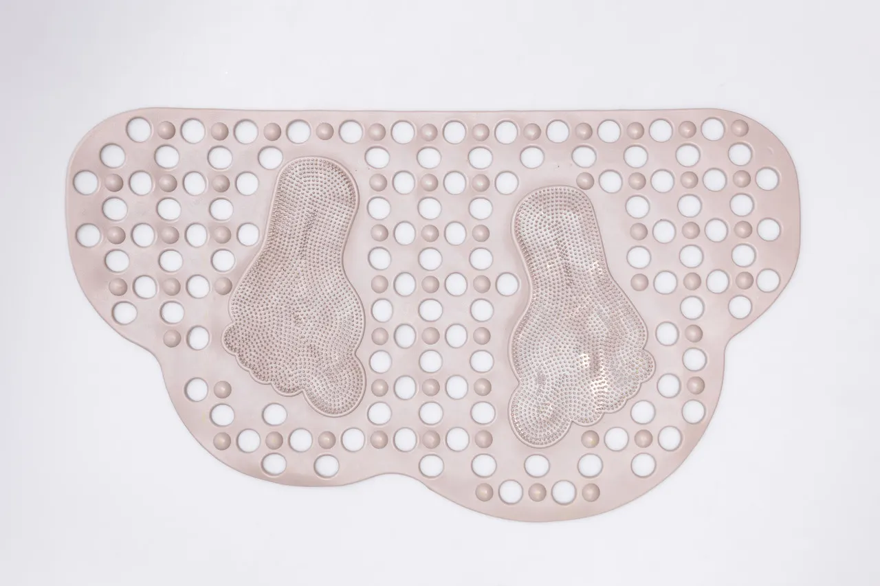 Рельефные массажные зоны выполнены в анатомической форме, что дополнительно улучшает ощущение комфорта при стоянии и активирует точки на стопах, способствуя расслаблению мышц. Вес коврика, составляющий 500 г, гарантирует его неподвижность во время водных процедур, исключая возможность случайного смещения.