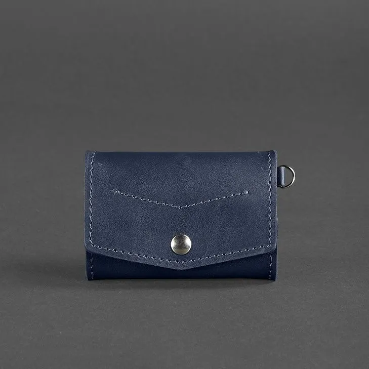 Кожаная монетница с клапаном 1.0 тёмно-синяя