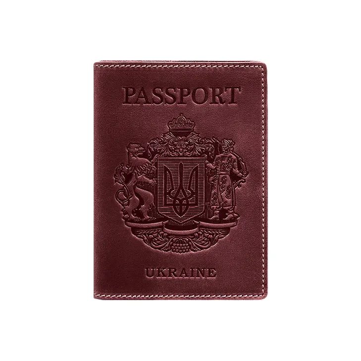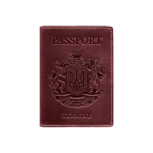 Характеристики "Кожаная обложка для паспорта с украинским гербом бордова"