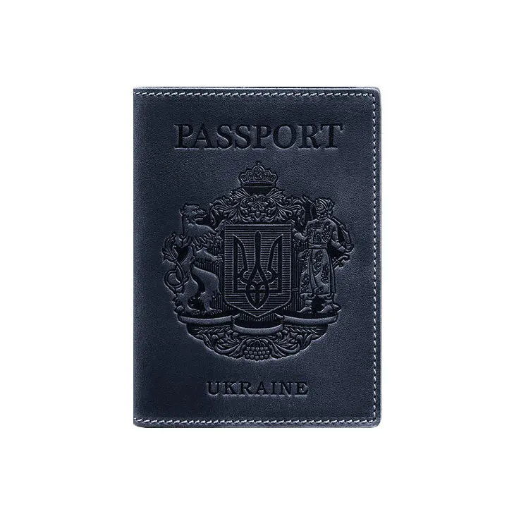 Характеристики "Кожаная обложка для паспорта с украинским гербом синяя"