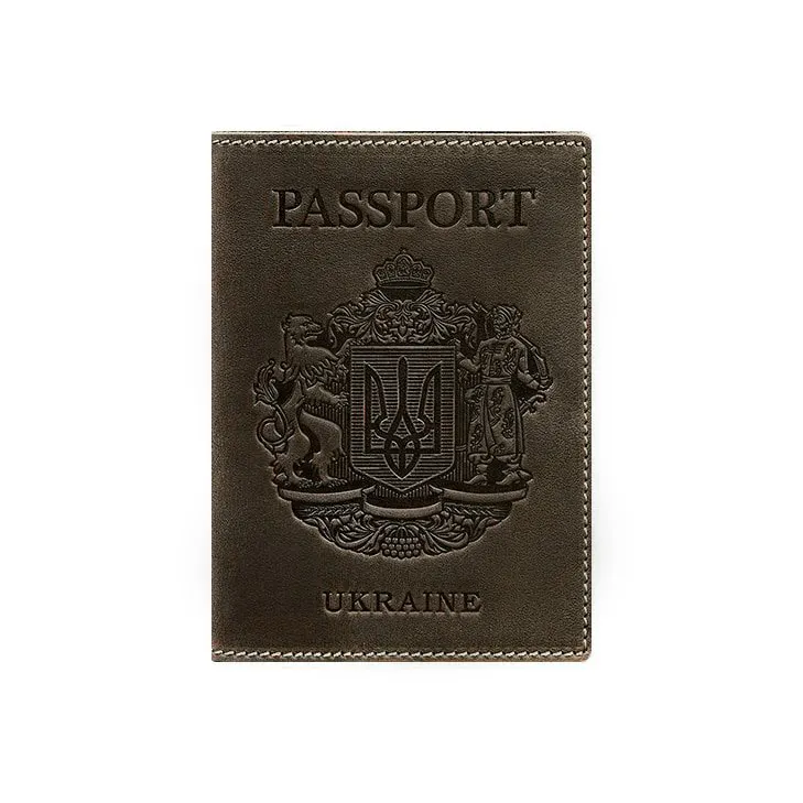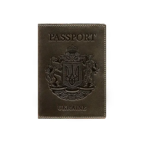 Характеристики "Кожаная обложка для паспорта с украинским гербом темно-коричневая"