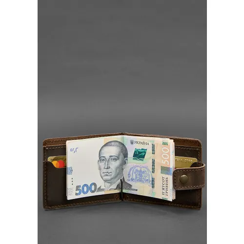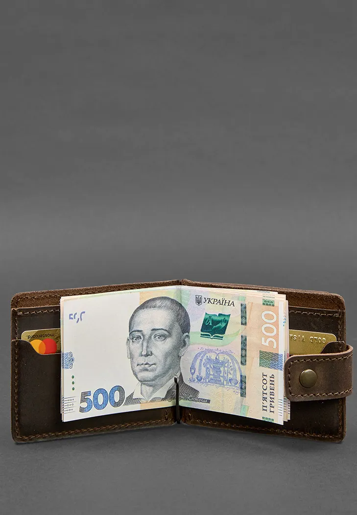 Кожаное портмоне 13.1 зажим с хлястиком темно-коричневое Crazy Horse идеально подходит для хранения ваших средств. Кошелек имеет два слота для карт внутри, которые легко вмещают вашу кредитную карту, водительское удостоверение или любую другую карту, которую вы хотите носить с собой.
