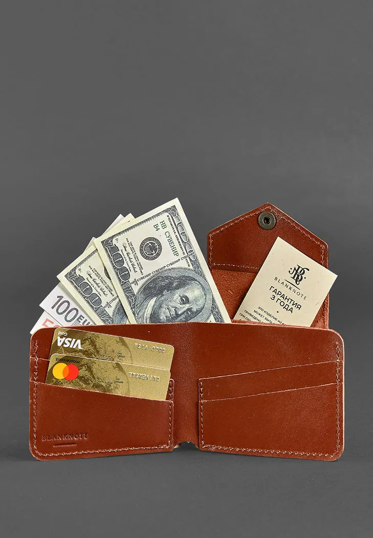 Кожаное портмоне 4.2 на кнопке светло-коричневое