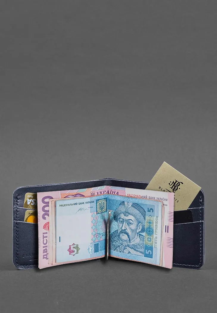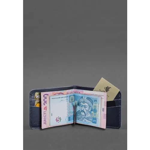 Кожаное портмоне 4.4 (с зажимом) синий краст — отличный выбор для тех, кто ищет стильное и практичное решение для хранения кредитных карт и наличных денег. Изготовленный из высококачественной кожи, он обеспечивает долговечность и элегантный внешний вид.
