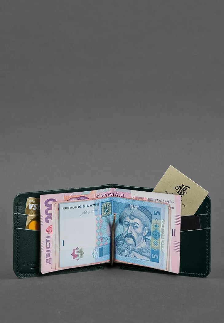 Кожаное портмоне 4.4 (с зажимом) зелёный краст