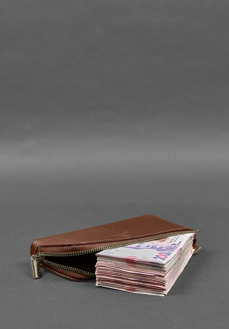 Кожаное портмоне-купюрщик на молнии 14.0 светло-коричневое