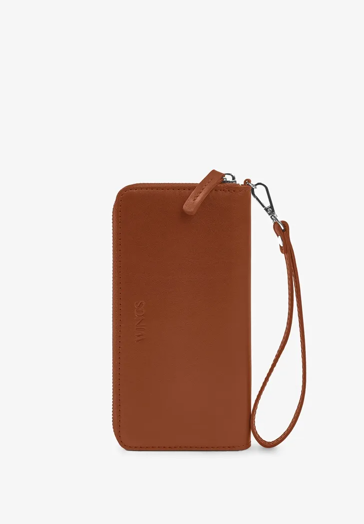 Портмоне можно носить на запястье благодаря специальной съемной петельке из кожи, что добавляет удобства в использовании, оставляя руки свободными. Декором аксессуара является стильное тиснение в виде логотипа бренда The Wings, что подчеркивает его эстетику и уникальность. Гарантия на данную модель составляет 3 года с момента покупки, что свидетельствует о высоком качестве и долговечности продукта.