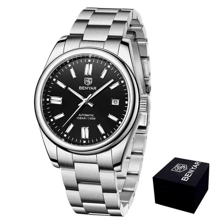 При выборе часов рекомендуется обращать внимание на материал корпуса и ремешка, размер и форму, а также стиль модели. Benyar BY-5185 Black выполнены из металла, что обеспечивает долговечность и презентабельный внешний вид. Размеры этой модели подходят для большинства мужчин с различной толщиной запястья.
