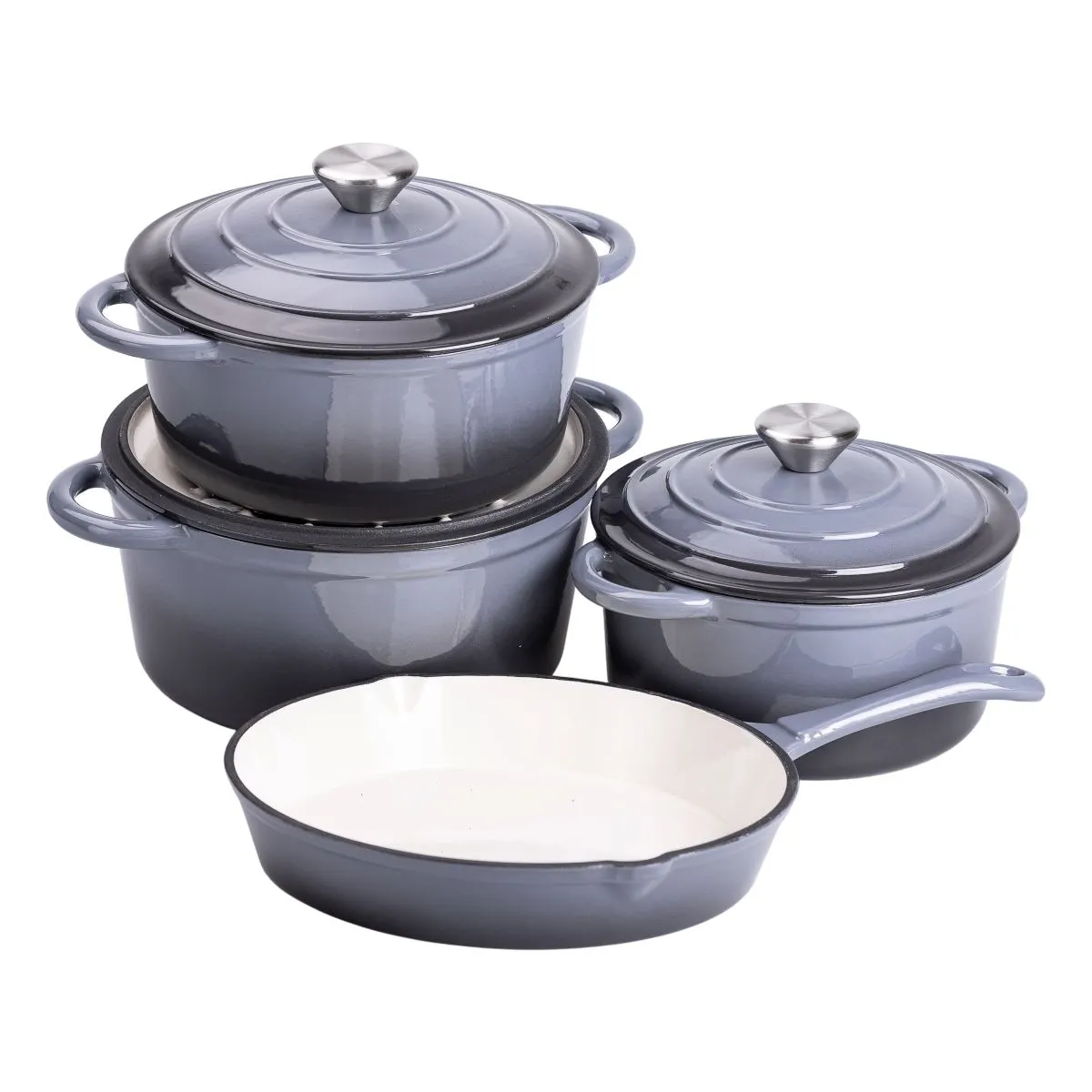 Набор чугунной посуды для приготовления 3 кастрюли и сковорода с эмалированным покрытием Серый HP-1-5