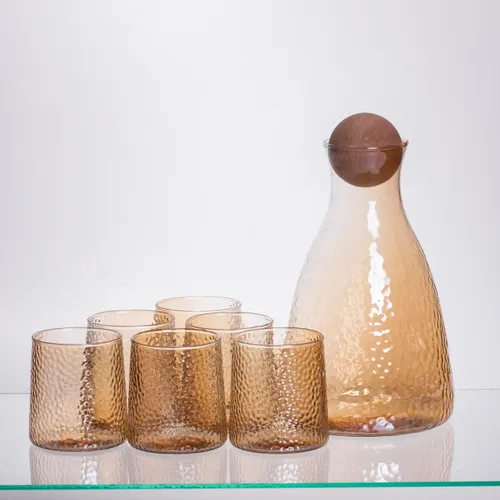 Набор для напитков графин с бамбуковой крышкой и 6 стаканами, коричневый 64486-36