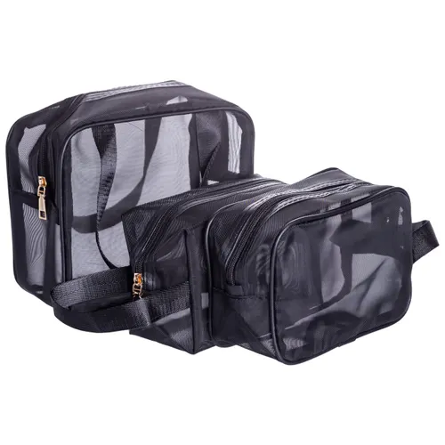 Материал косметичек — сетчатый ПВХ, известный своей водонепроницаемостью и стойкостью к загрязнениям. Такой материал легко моется и не теряет форму даже после интенсивного использования. Молнии работают плавно, обеспечивая надежную фиксацию содержимого.
