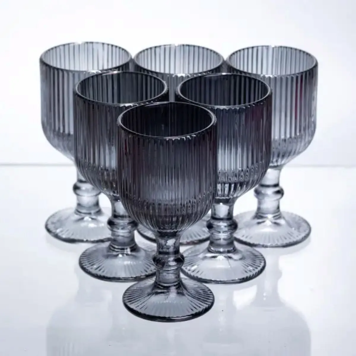 Характеристики "Набор рюмок для крепких напитков 6 штук по 50 мл ребристых из толстого стекла серый HP-19-229"