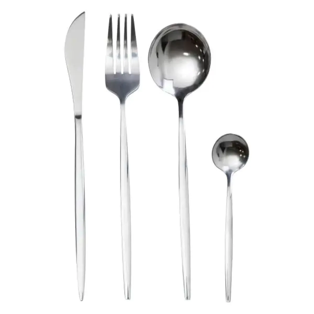 Дизайн серебристого цвета с зеркальной поверхностью позволит гармонично сочетать данный набор с разнообразной посудой и сервировочным текстилем, что делает его отличным выбором как для ежедневной эксплуатации, так и для праздничных застолий. Набор подойдет для дома, кафе, ресторанов и других заведений общественного питания.