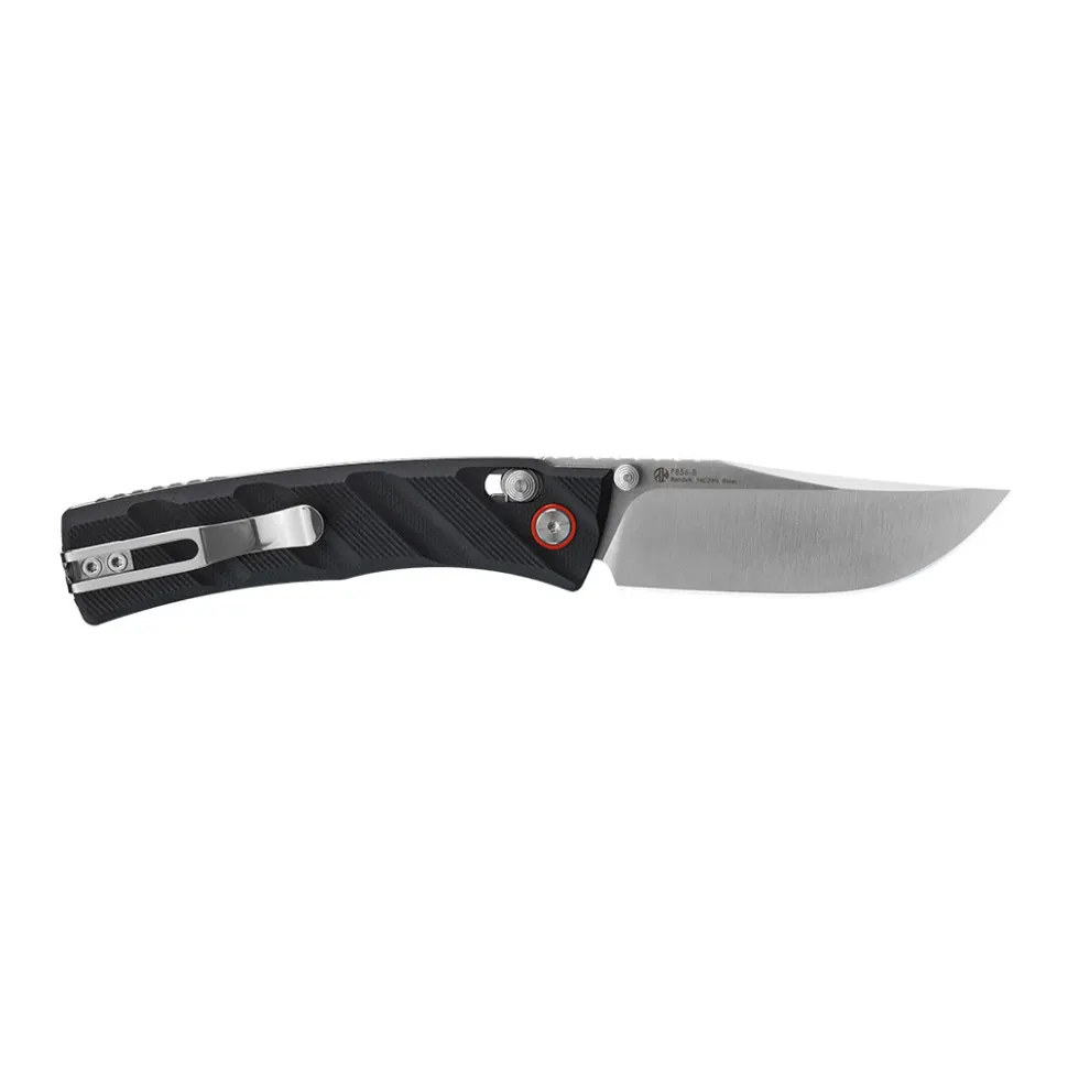 Открытие ножа Ruike P856-B осуществляется при помощи двусторонней шпеньки, что позволяет удобно использовать нож как правшам, так и левшам. Замок типа Crossbar Lock фиксирует клинок с отчетливым щелчком, обеспечивая надежную блокировку и безопасность во время применения даже при высоких нагрузках.