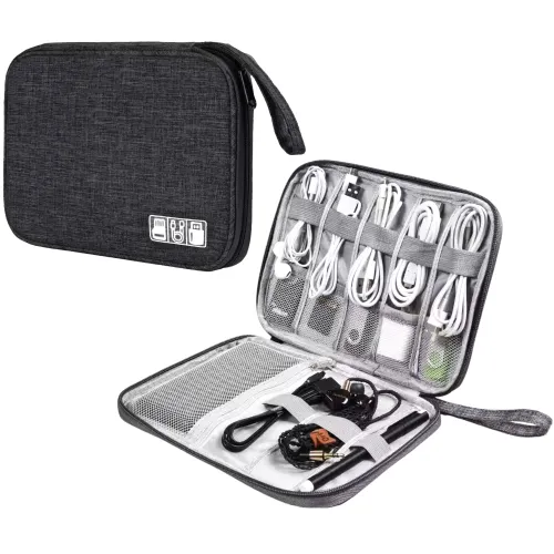 Органайзер имеет несколько карманов и отделений для аккуратного размещения кабелей различных типов: USB, зарядных устройств, наушников и адаптеров. Такой многофункциональный дизайн позволяет рационально использовать внутреннее пространство, минимизируя путаницу и создавая порядок.