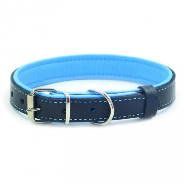 Характеристики "Ошейник для собак кожаный двойные SOFT 2,5/36-46 черный+голубой"
