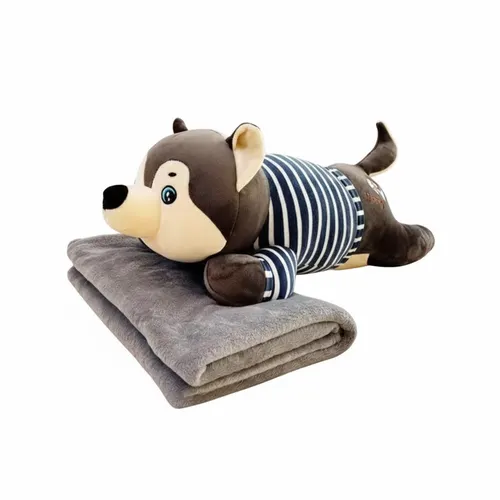 Плед-игрушка подушка 3 в 1 Собака Хаски-матрос (110х150 см) с пледом Коричневый 520-3BR